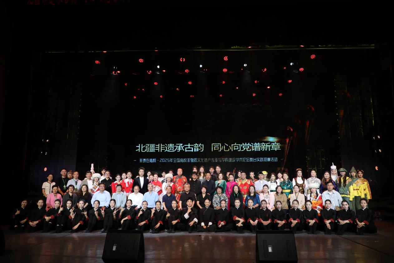观看内蒙古艺术学院非遗教学成果展演后与演职人员合影